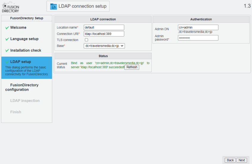 LDAP admin の password を入力し[Reflesh]をclick