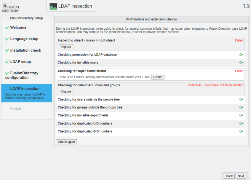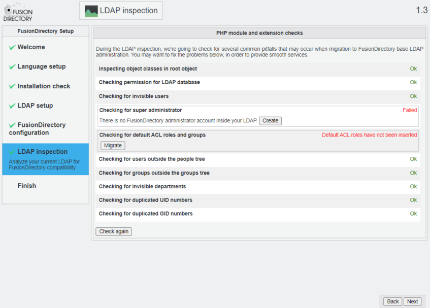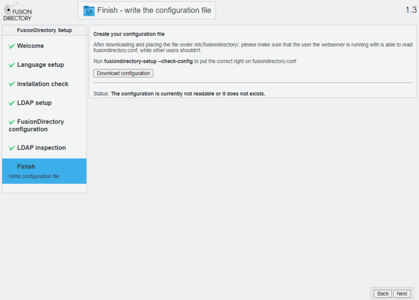 Checking FusionDirectory's config file