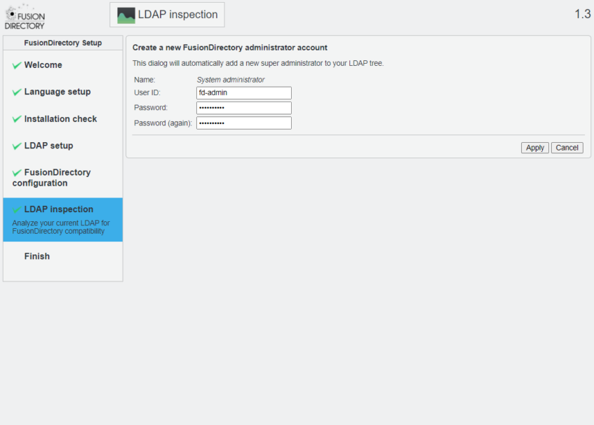 User ID : fd-admin の Password を入力し [Apply] を click